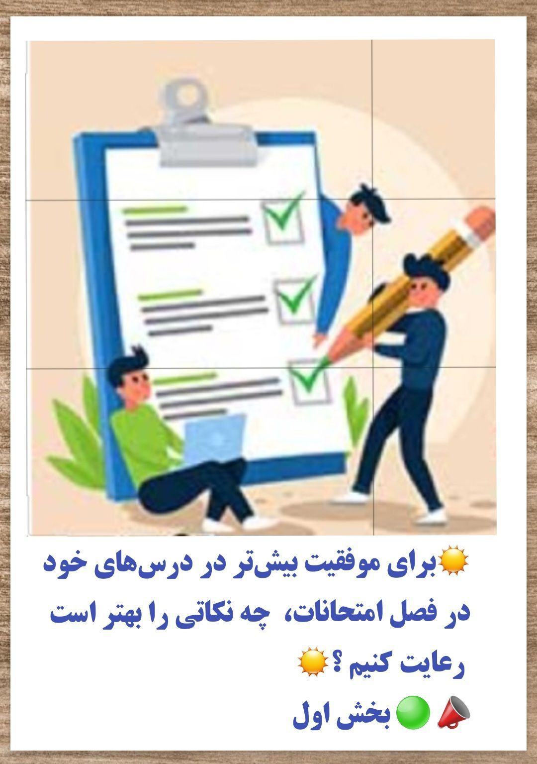 براي موفقيت بيشتر در درسهای خود در فصل امتحانات، نکات زير را رعايت کنيد.