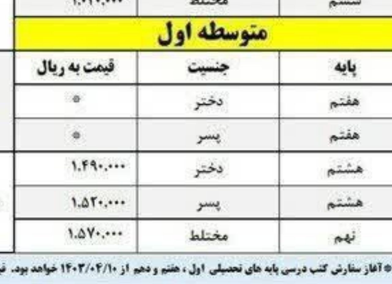 ثبت نام کتابهای درسی سال آینده(پایه هشتم و نهم) آغاز شد.