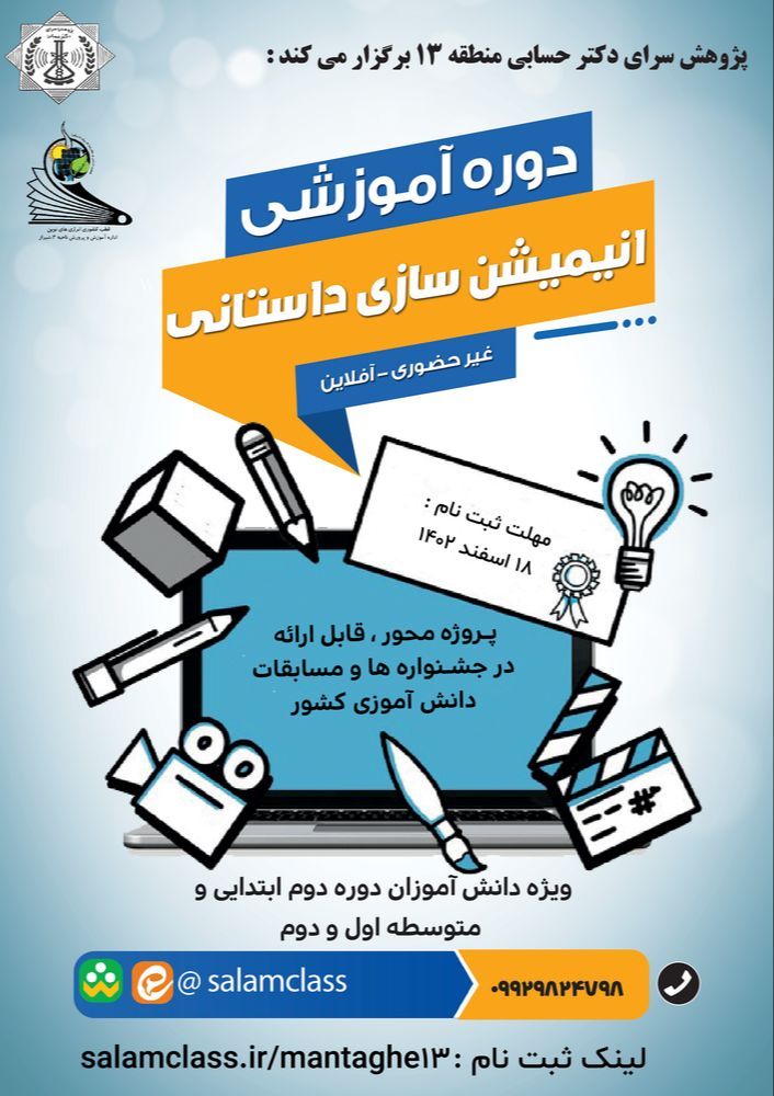 به استحضار می رساند؛ پژوهش سرای دکتر حسابی، قطب انرژی های نوین شهر تهران اقدام به برگزاری دوره آموزشی ساخت تولید محتوا و انیمیشن سازی داستانی به صورت مجازی ( غیرحضوری -آفلاین) برای دانش آموزان دوره دوم ابتدایی و متوسطه اول و دوم شهر تهران نموده است. این دوره ، شامل آموزش های لازمه همراه با مشاوره و پشتیبانی تا مرحله ارائه نهایی تولید یک محتوای علمی، ویژه مسابقات و جشنواره های دانش آموزی انرژی های نوین می باشد .