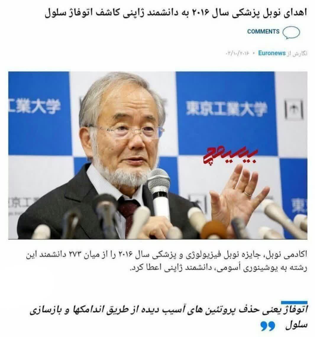 پرفسور یوشینوری اُسومی دانشمند ژاپنیه که برنده جایزه نوبل شده و مکانیسم اتوفاژی یا (خودخواری سلولی ) از اکتشافاتش بوده...